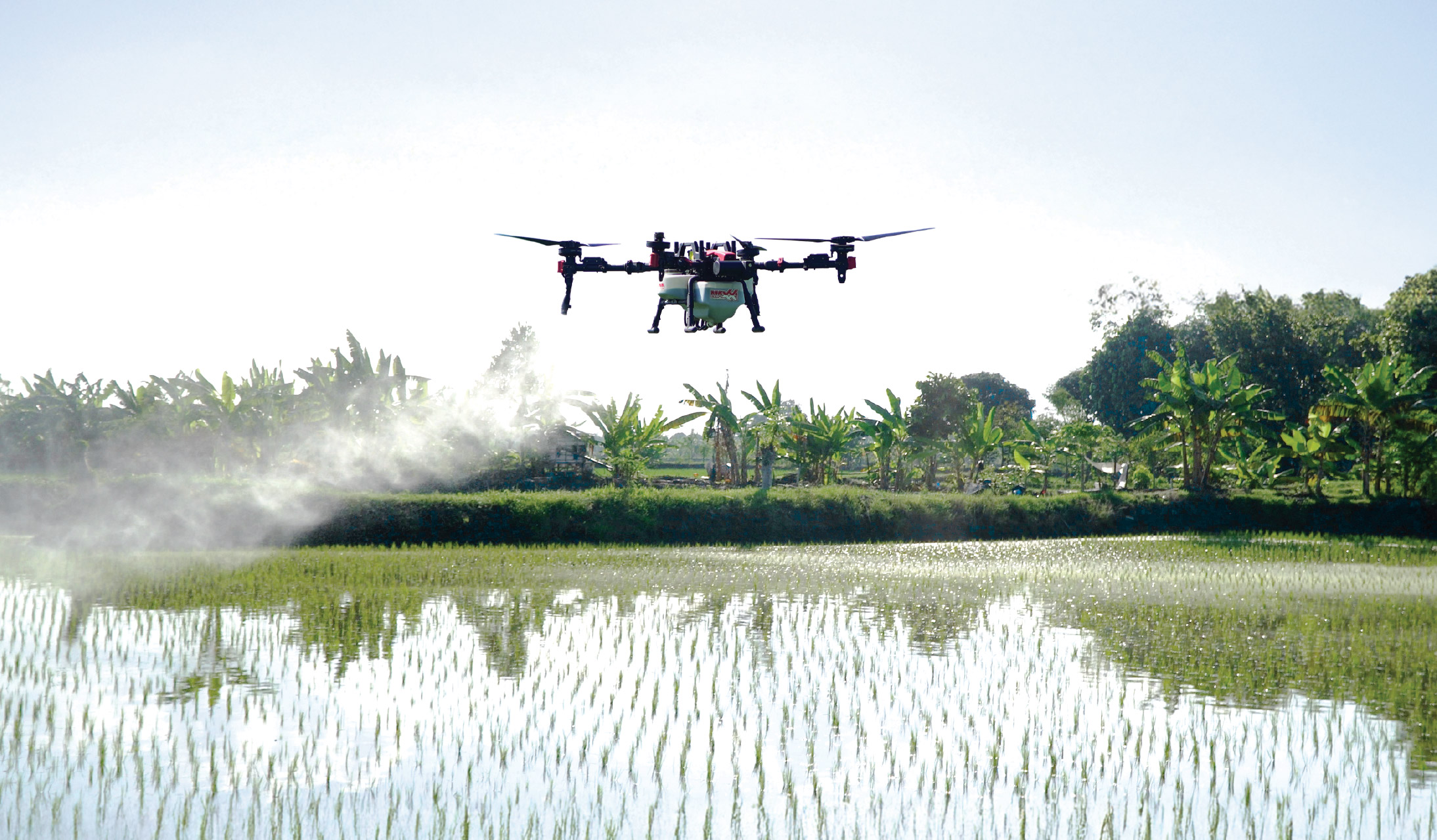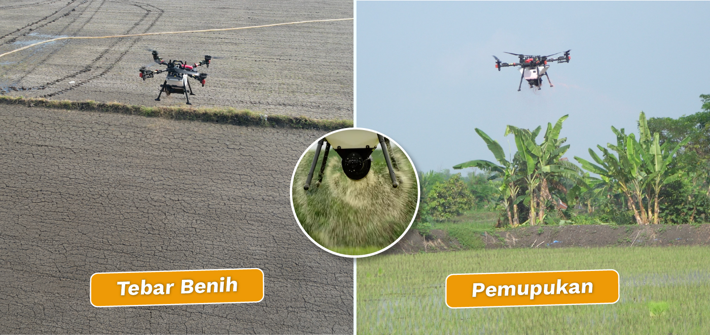 Perawatan pada tanaman dapat berupa pembersihan gulma dengan power weeder, pemupukan dengan drone spreader dan penyemprotan pestisida menggunakan drone sprayer.
